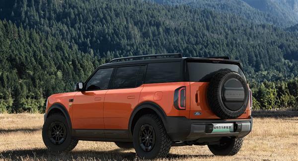 该车定位全地形露营SUV,整车设计风格与同胞福特Bronco Sport车型相似设,采用城市化方盒子设计,不过由于是新能源SUV,视觉效果更加内敛。