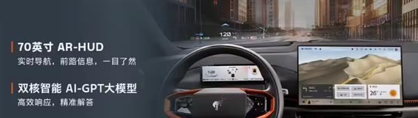 而诸如70英寸AR-HUD抬头显示、全液晶仪表、手机无线充电、语音AI大模型、21扬声器音响系统、7.5L冷暖车载冰箱、全景天窗等配置均有提供。