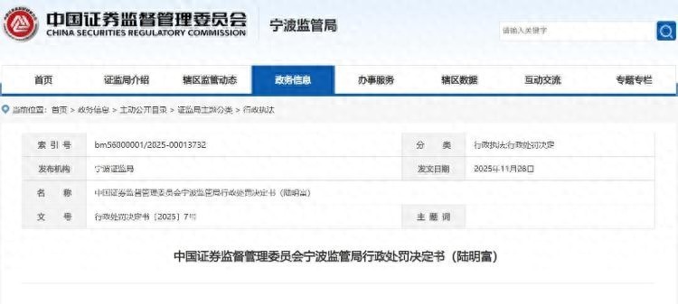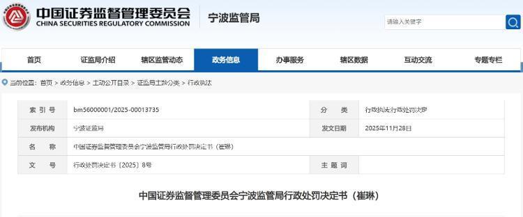 决定书显示,应当事人的要求,宁波证监局曾于2025年10月31日举行听证会,听取了崔琳及其代理人、陆明富及其代理人的陈述和申辩。